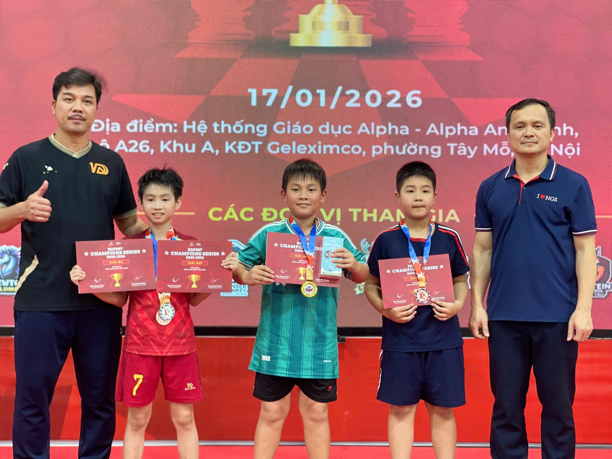 Tại kỳ thi lần này, nhà trường đặc biệt tuyên dương học sinh Nguyễn Hải Đăng (lớp 1GE) và Kiều Quang Minh (lớp 4GE) đã xuất sắc giành được Huy chương Vàng VÔ ĐỊCH QUỐC GIA, đồng thời hai em cũng đoạt thêm giải thưởng Longest Jump (Bước nhảy Kangaroo) dành cho thí sinh trả lời đúng liên tục nhiều nhất mỗi khối lớp.