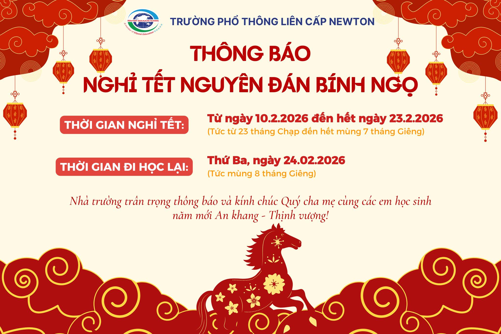 THÔNG BÁO NGHỈ TẾT NGUYÊN ĐÁN BÍNH NGỌ 2026