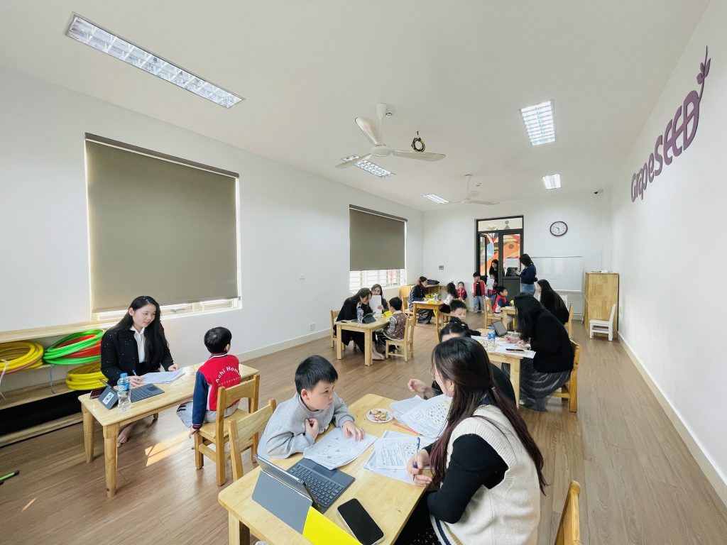 Trong buổi đánh giá, dưới sự hướng dẫn tận tình của đội ngũ giáo viên, các em học sinh đã tham gia các bài phỏng vấn ngắn hoàn toàn bằng tiếng Anh với giáo viên nước ngoài, kết hợp bài kiểm tra năng lực ngôn ngữ, Toán tư duy và các nội dung đánh giá trực tiếp trên máy tính bảng của Newton. Thông qua việc thao tác trên thiết bị học tập hiện đại, học sinh thể hiện khả năng tiếp cận công nghệ, tư duy và phản xạ học tập một cách tự nhiên, hứng thú.