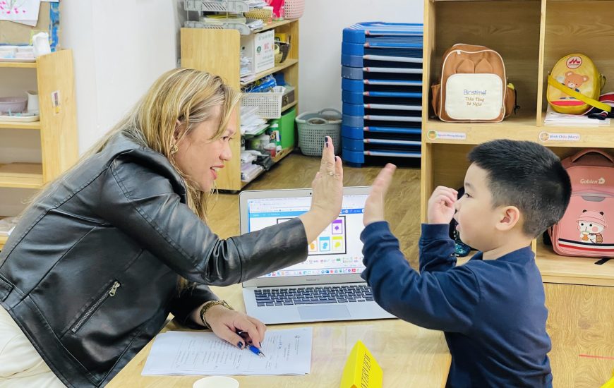 Trong buổi đánh giá, dưới sự hướng dẫn tận tình của đội ngũ giáo viên, các em học sinh đã tham gia các bài phỏng vấn ngắn hoàn toàn bằng tiếng Anh với giáo viên nước ngoài, kết hợp bài kiểm tra năng lực ngôn ngữ, Toán tư duy và các nội dung đánh giá trực tiếp trên máy tính bảng của Newton. Thông qua việc thao tác trên thiết bị học tập hiện đại, học sinh thể hiện khả năng tiếp cận công nghệ, tư duy và phản xạ học tập một cách tự nhiên, hứng thú.